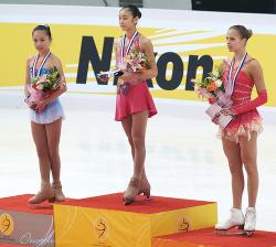 the structure that the winning athletes (those finishing in first, second and third position) stand on while they receive their medals